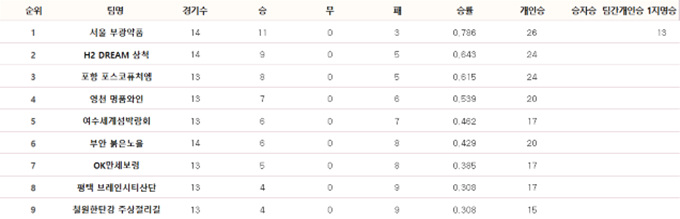 ▲ 15라운드 종료 후 팀 순위표.